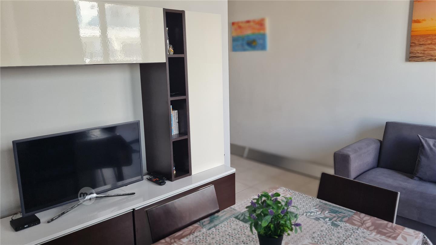 It is served with a lift and air-conditioned in the kitchen/living area and the main bedroom. Upon entering the apartment, one can find a fully equipped kitchen/living with a 32inch TV and overlooking the front sunny terrace. This is nicely equipped with outdoor furniture which include large dining table with chairs and sunbeds. The property has a main bathroom with a bathtub and washing machine, main bedroom with a king size bed and an ensuite shower, and a single bedroom. Both bedrooms overlook the back terrace where one can find a storage area and space for drying clothes. Apartment apertures are in double glaze & with mosquito nets.