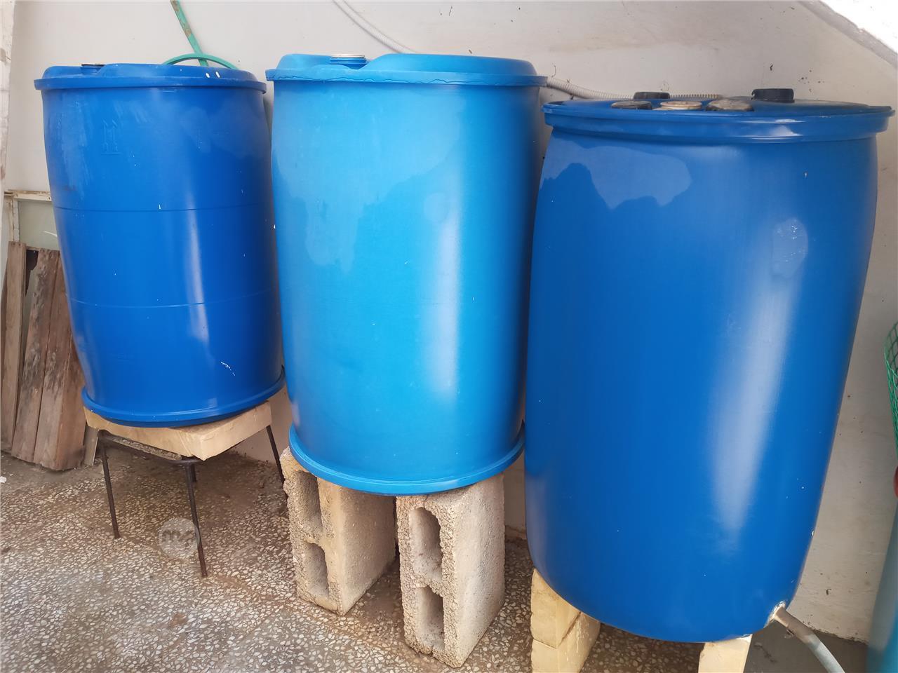 3 large (approx 45 gallons/200 litres each) and two smaller.