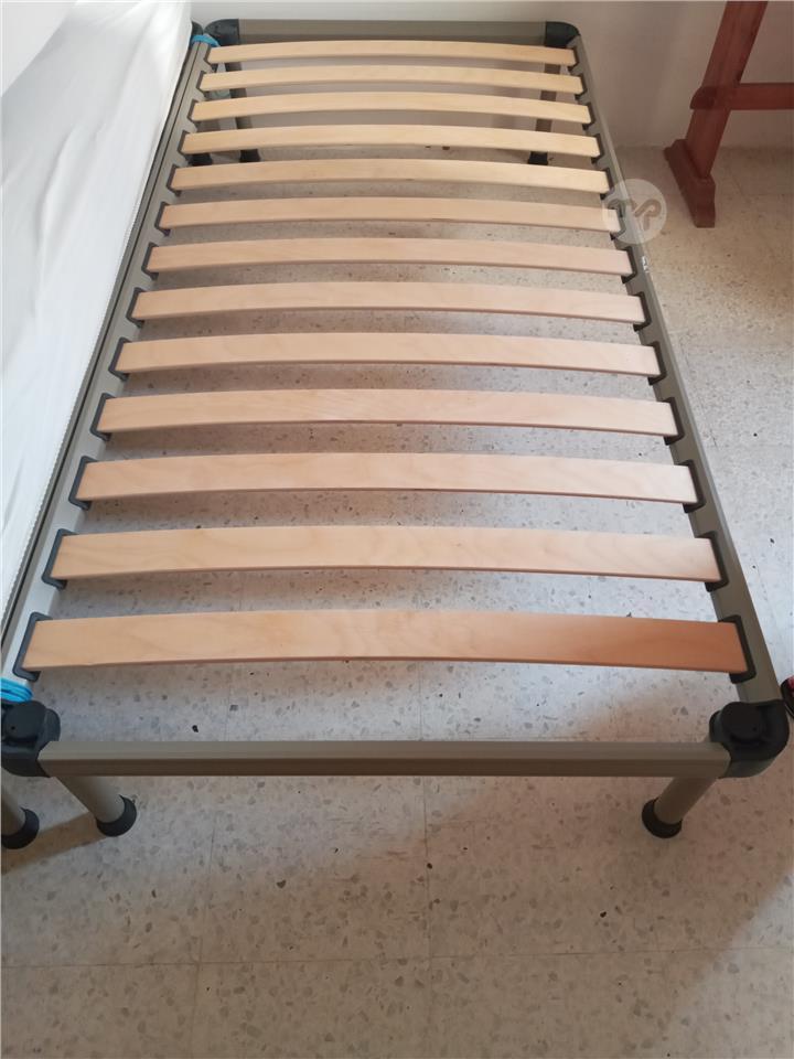 Two metal single beds with wooden slats - 190 cm long x 90 cm wide.