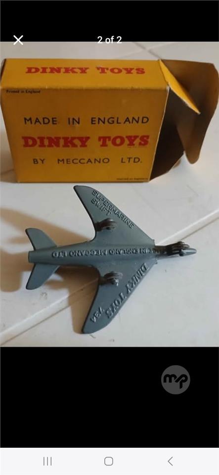 1960s Dinky toy Supermarine jet fighter No. 734 in perfect condition and with original box. Rare find.