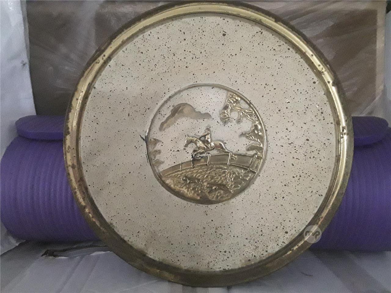 Decorative Metal Embossed Plate old gold/white. Wall-mounted or Holding Stand.