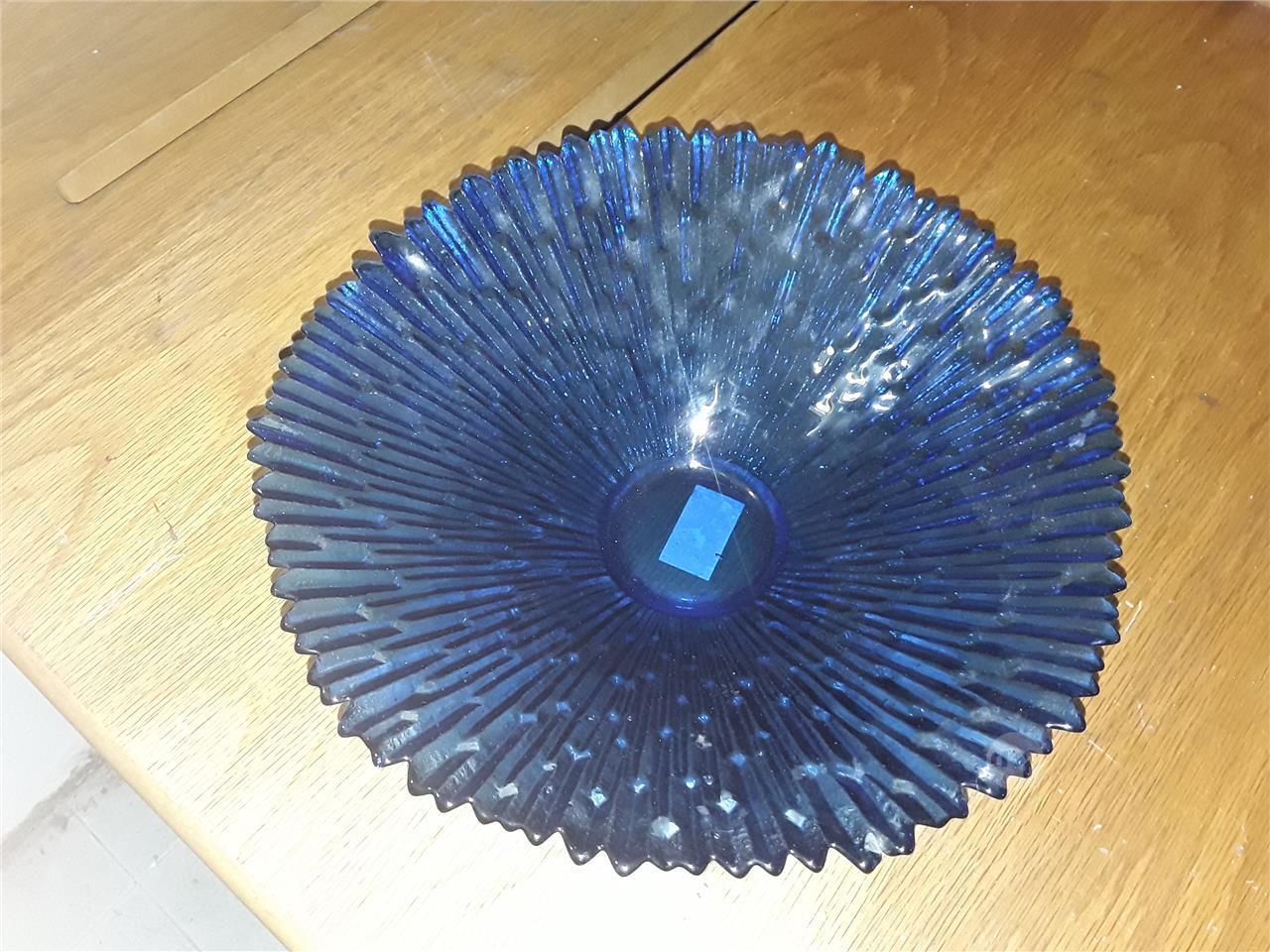 Blue glass Centrepiece plate with pleated design
