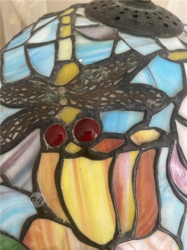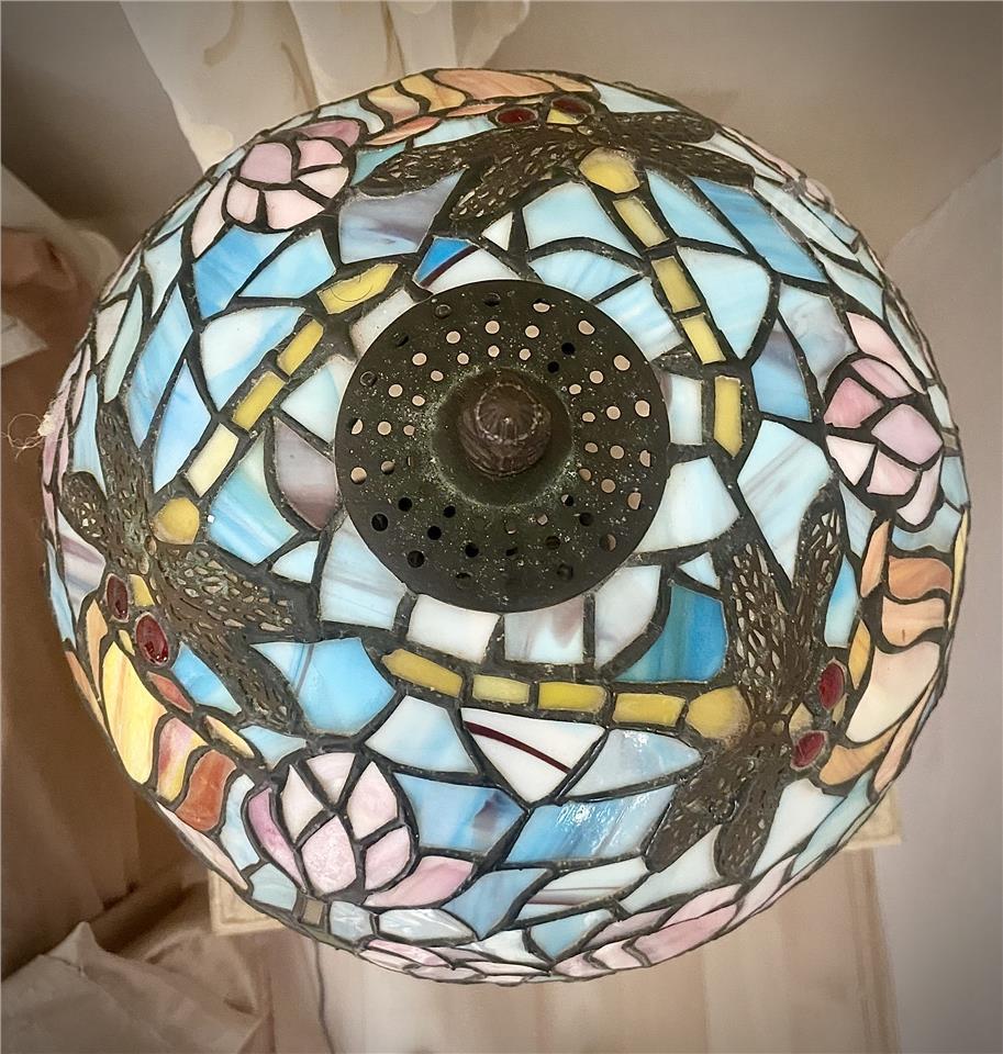 Mid-Century Tiffany-Style Dragonfly Stained Glass Lamp