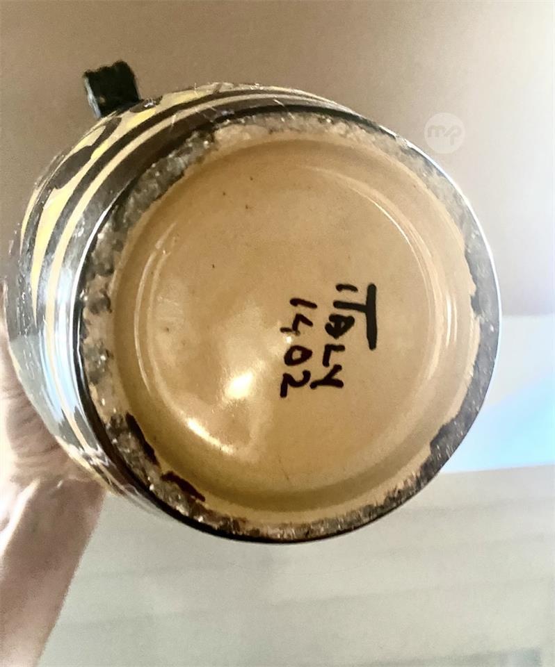 Beautiful pair of antique Italian ceramic vases, marked “Italy 1402”, dating back to the early/mid-20th century. These belonged to my husband’s great-grandmother making them a treasured family heirloom with history.