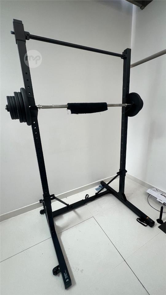 • Training rack – sturdy and adjustable, ideal for squats, bench press, and pull exercises (250€)