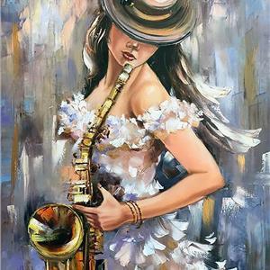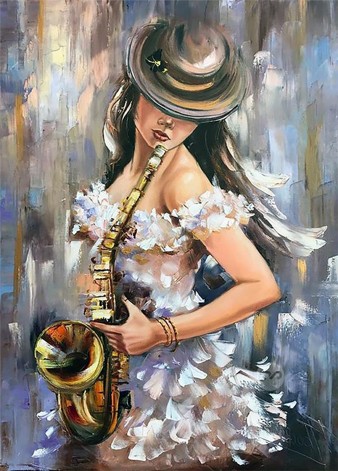 THE LADY SAXSAPHONE ------ ORIGINAL HAND PAINTING OIL ON CANVAS 70X50