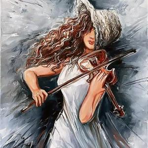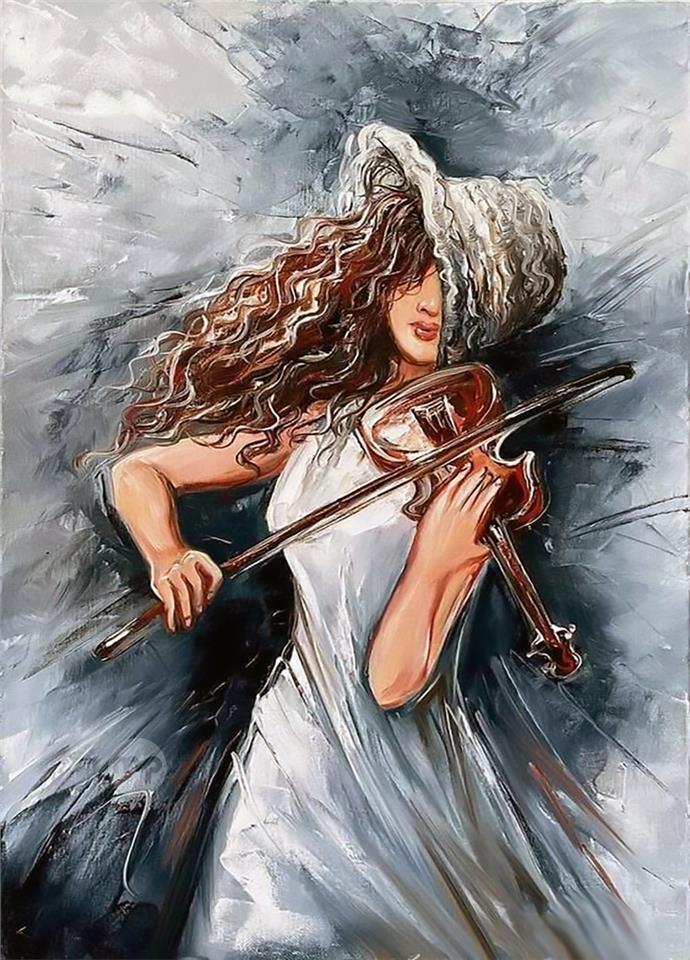 THE WHITE VIOLINIST ----- ORIGINAL HAND PAINTING OIL ON CANVAS 70X50
