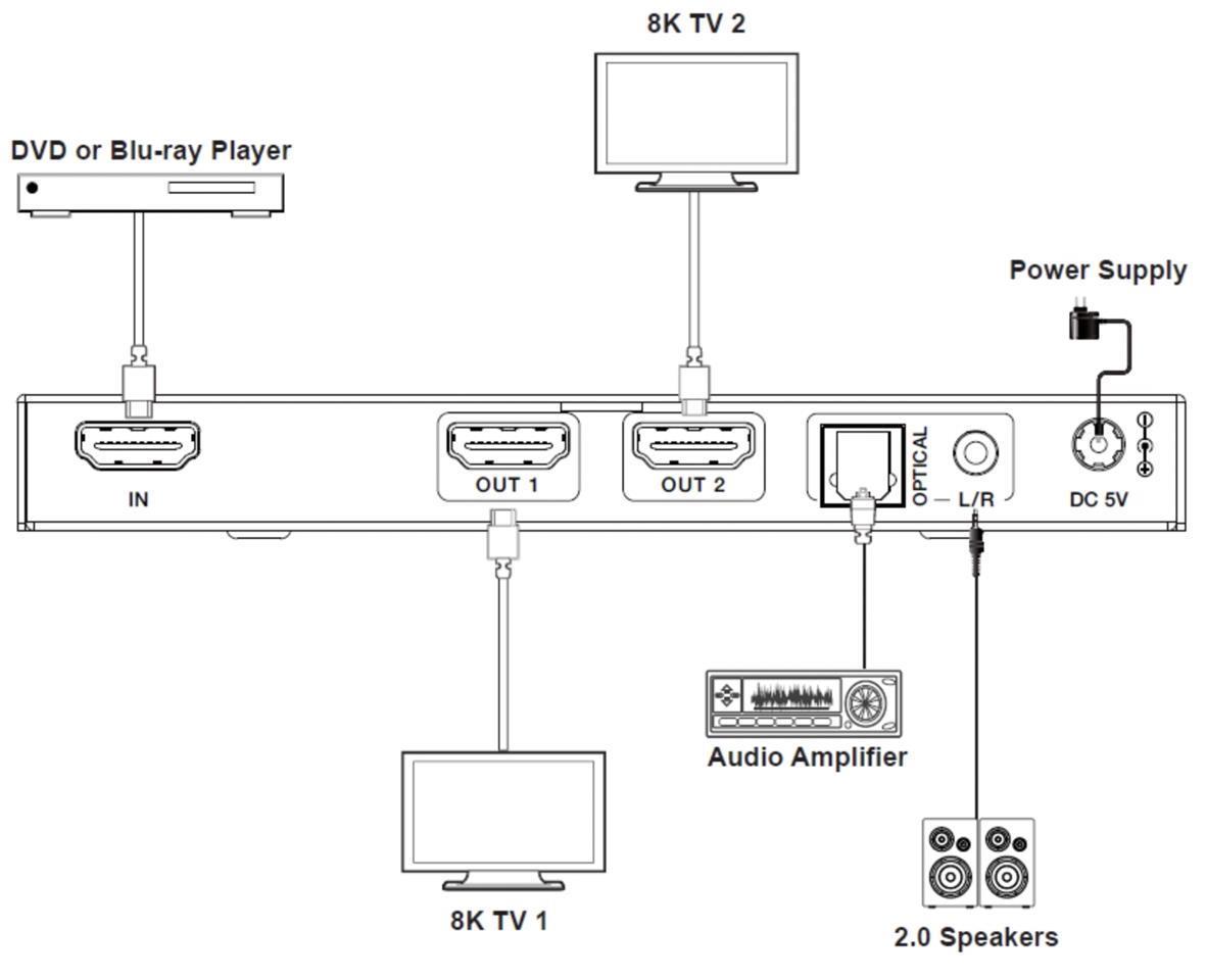 AirBase DC-SP12A2.1 – 40Gbps HDMI 2.1 1x2 Splitter with Audio De-embedder