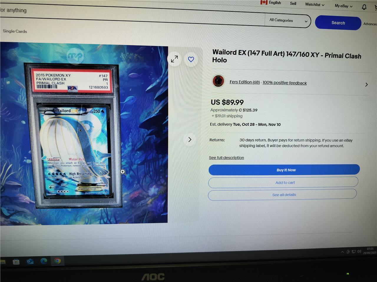 Wailord EX (147 Full Art) 147/160 XY - Primal Clash Holo