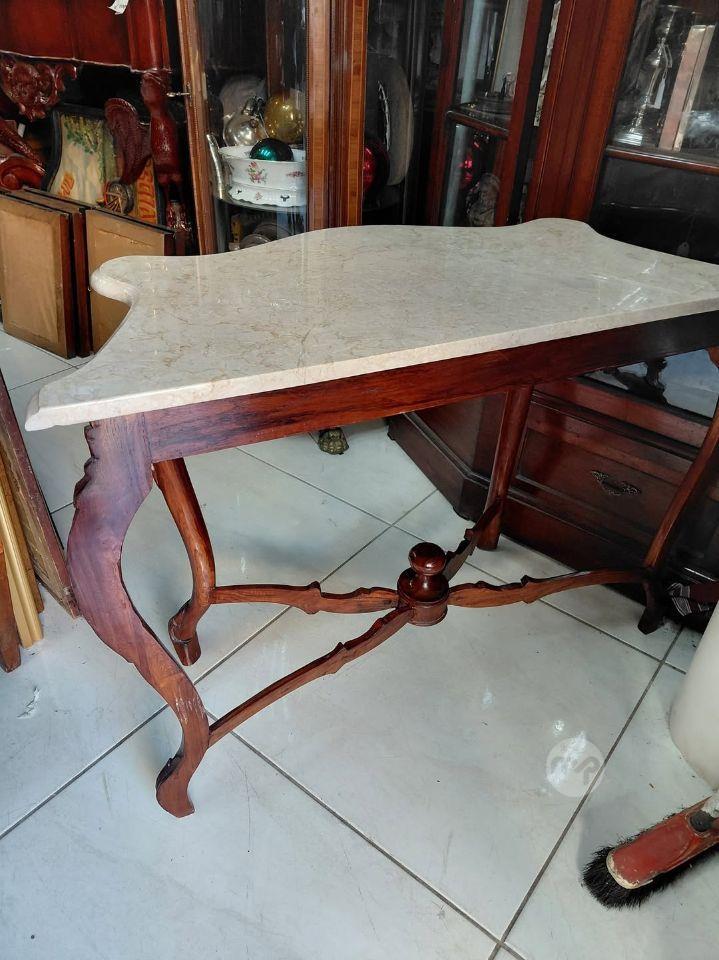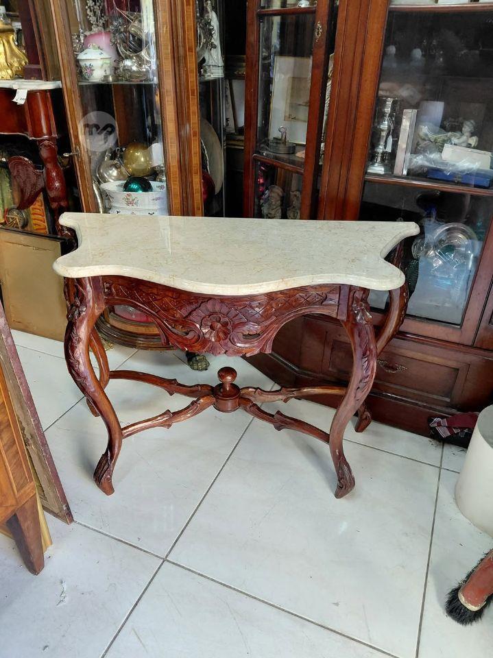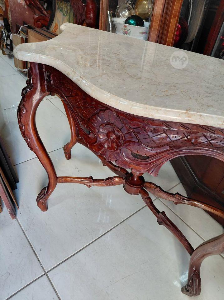 An Antique Carved wood Console with later cream colour Marble top Complete with