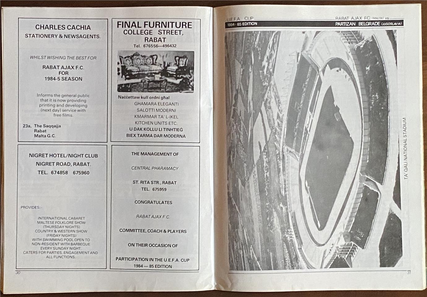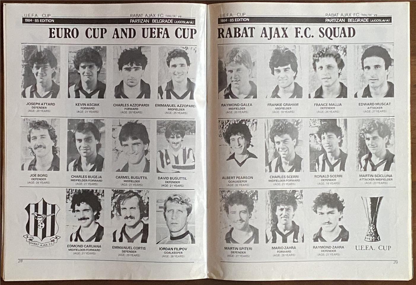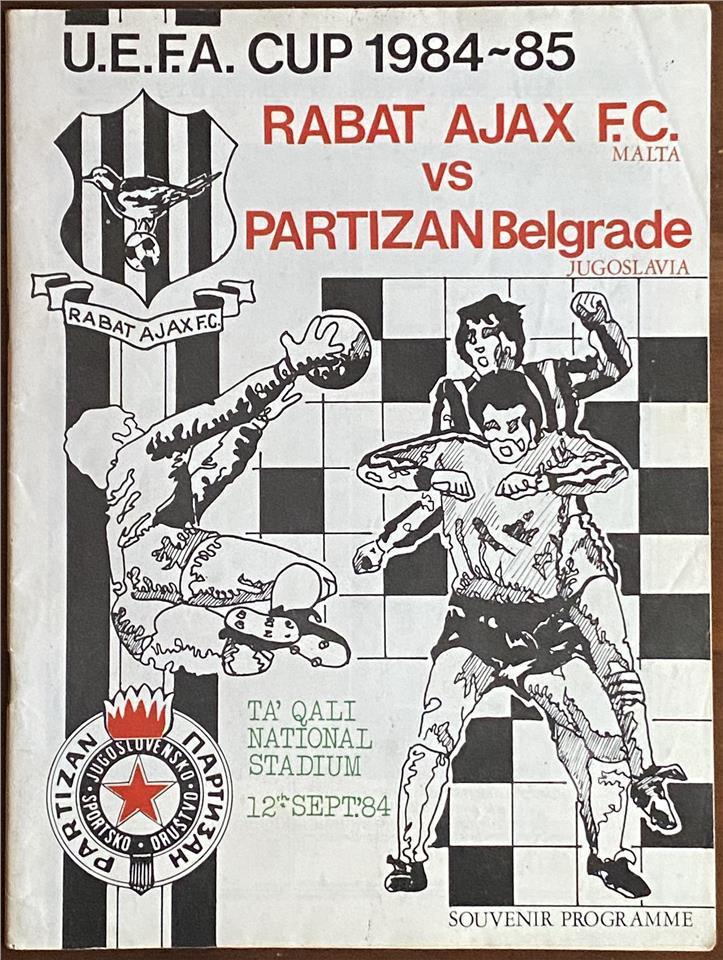 UEFA Cup 1984-85 Rabat Ajax vs Partizan Belgrade Programe.