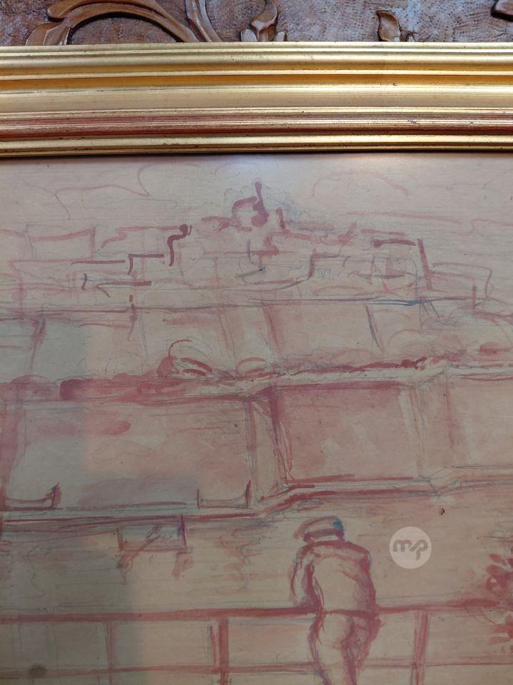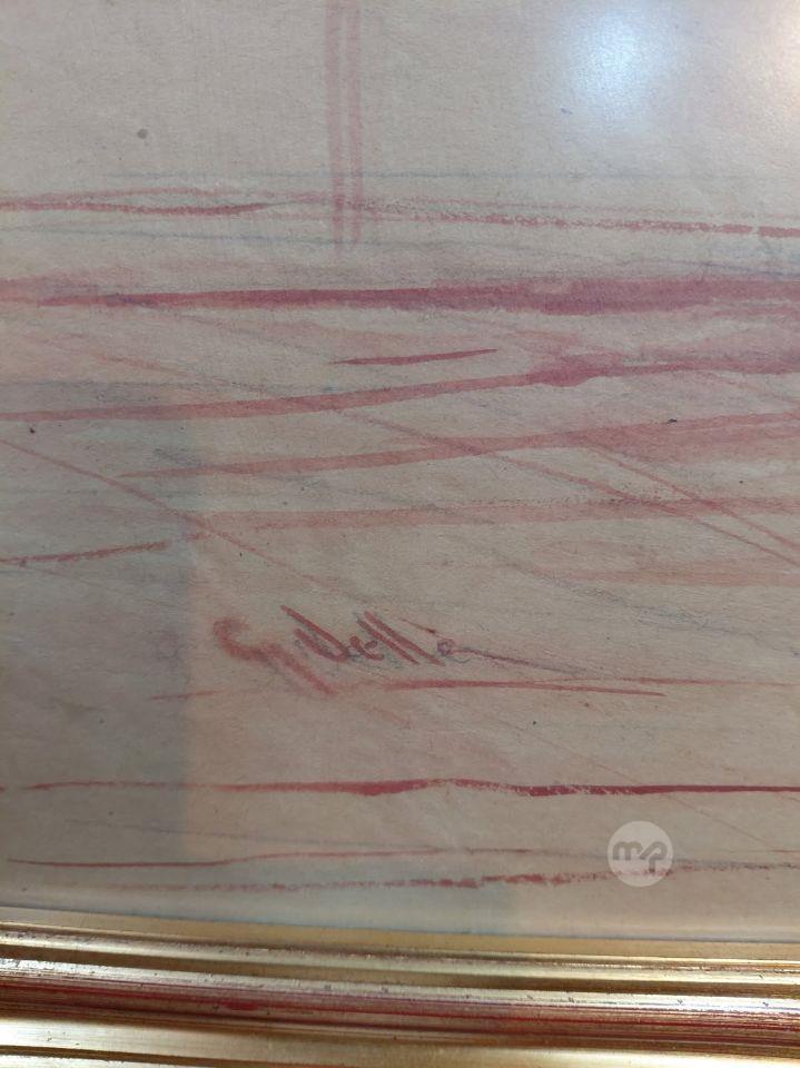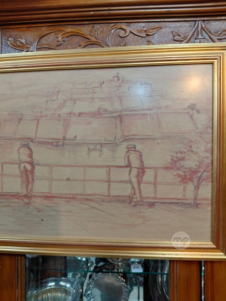 Sangwina painting By Maltese Artist Gianni Vella 1855-1977 Showing view of th
