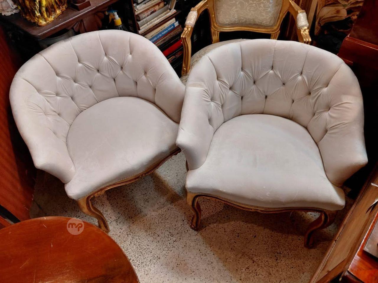 Pair Elegant cream and gold armchairs,both in excellent condition. 140 each.