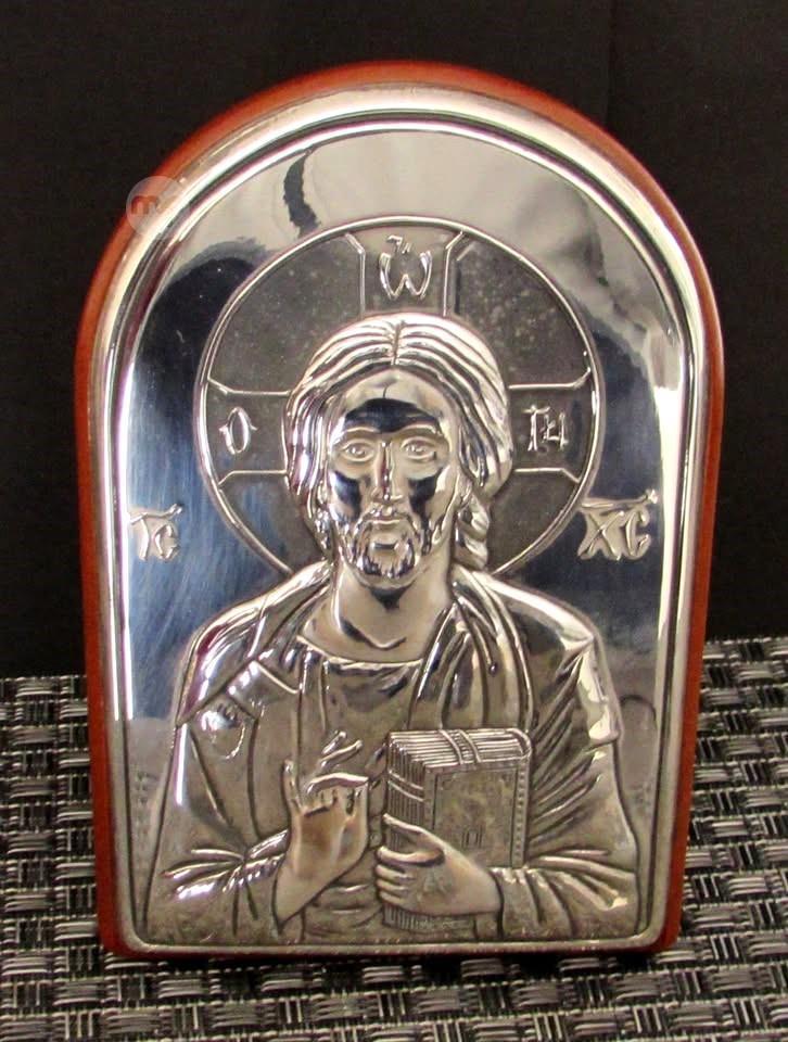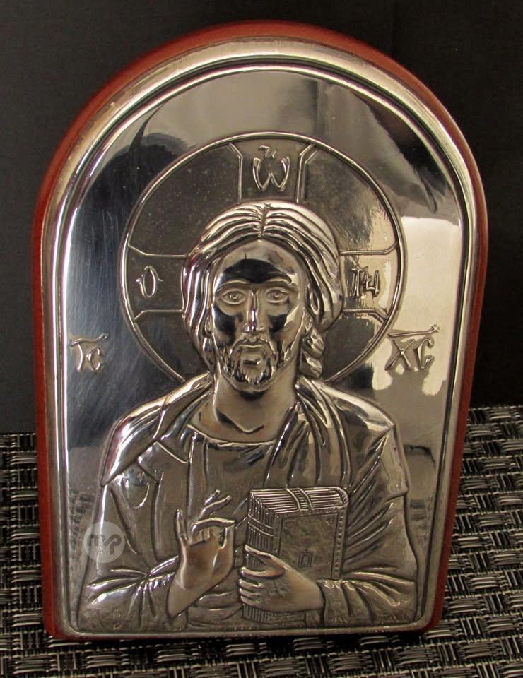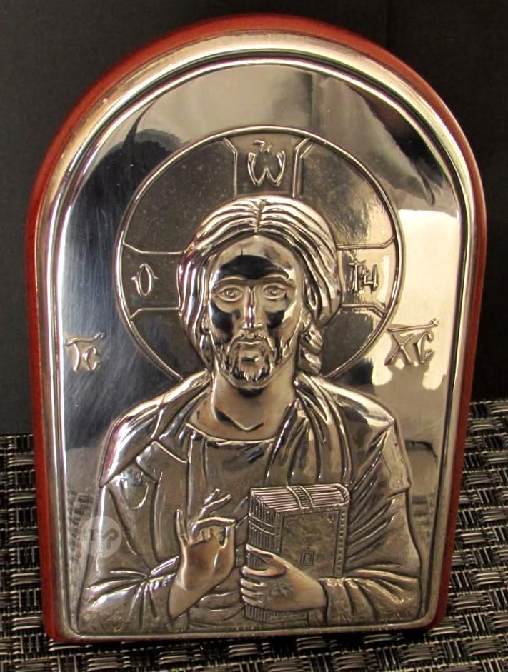 JESUS CHRIST - SILVER .925 on WOOD HOLY ICON