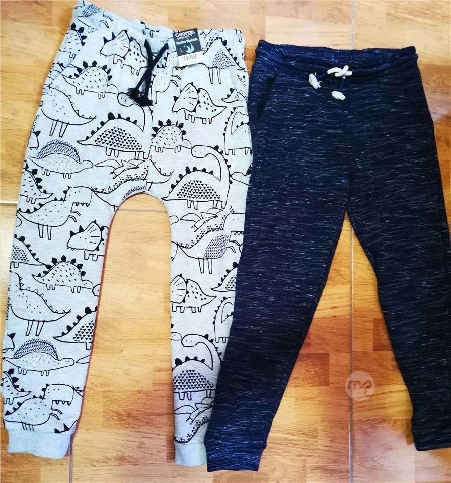 Two brand new boys joggers still with tags. One grey with dinosaurs and one lined navy blue. Both together for only €15.00 or €10.00 each if sold separately