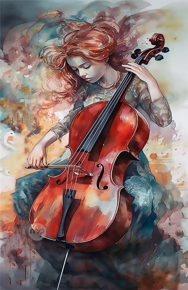 RED CELLO LADY-------- ORIGINAL HAND PAINTING OIL ON CANVAS 70X50