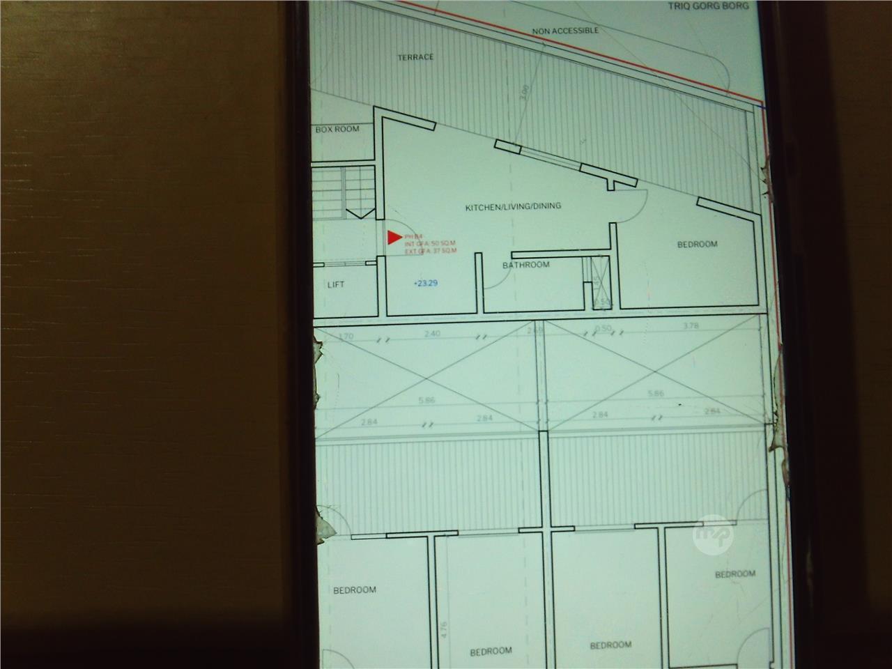 Qormi one bedroom penthouse 87 sqm have kitchen/dining/living,bathroom,own airspace and nice terrace with views .This penthouse is build and will be sold in shell form with common parts finished including lift