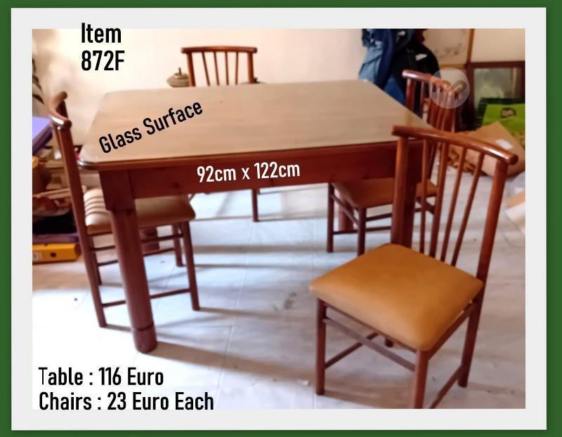 ( 872F ) SOLID WOOD TABLE & CHAIRS WITH GLASS SURFACE