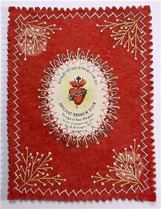 LAPTU ANTIK - LARGE ANTIQUE EMBROIDERED SACRED HEART OF JESUS SCAPULAR