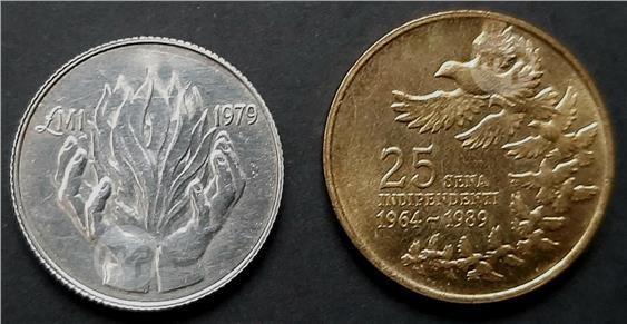 2 MALTA COMMEMORATIVE COIN / TOKEN - SILVER COIN 1979 / TOKEN 1989
