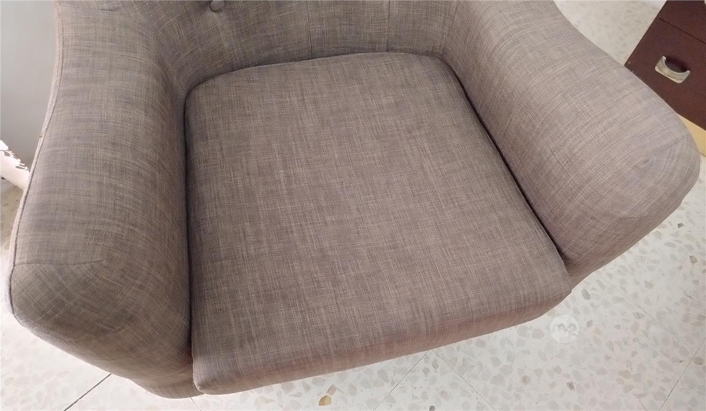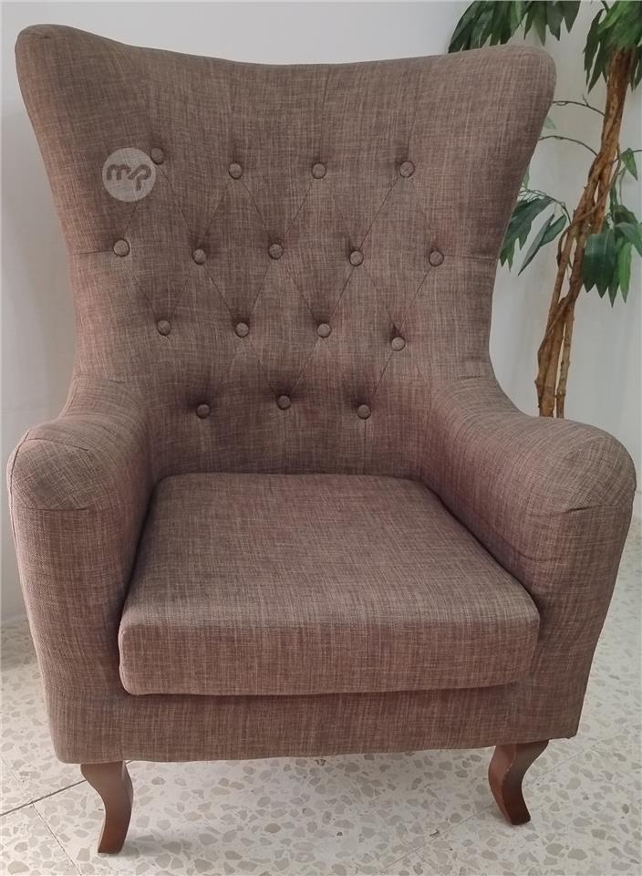 Brown, high-winged, fabric material armchair in excellent condition as it was barely used.