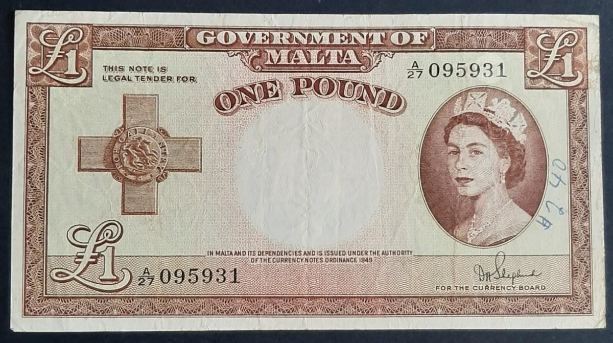MALTA - GOVERNMENT OF MALTA ELIZABETH II ONE POUND BANKNOTE (SCARCE)