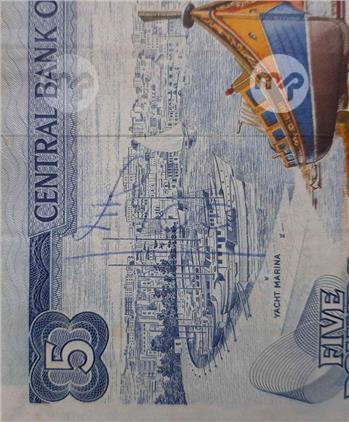 MALTA - BANK CENTRALI TA' MALTA HAMES LIRI (LM5) BANKNOTE signed J. LASPINA and J. SAMMUT - 1973