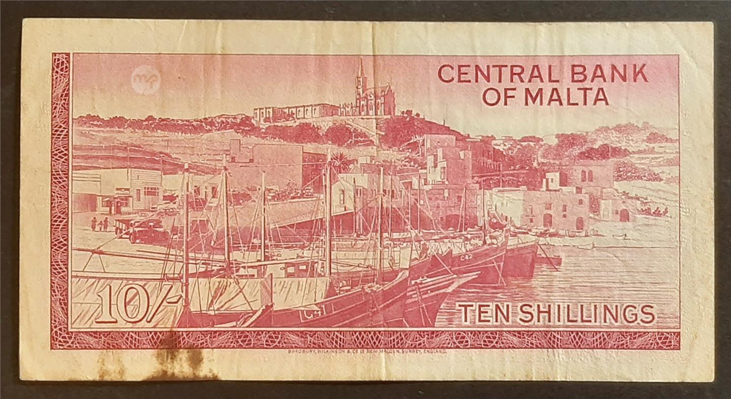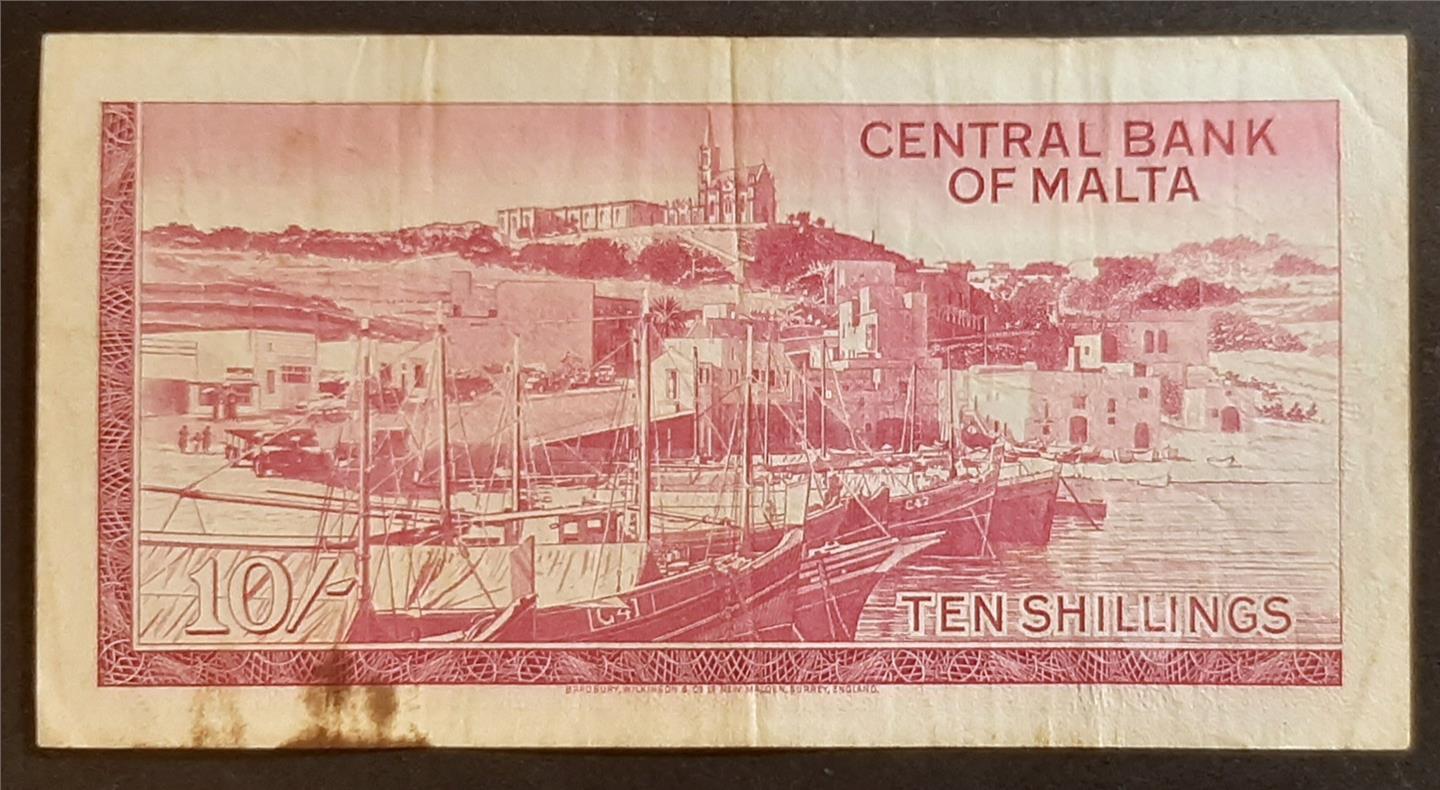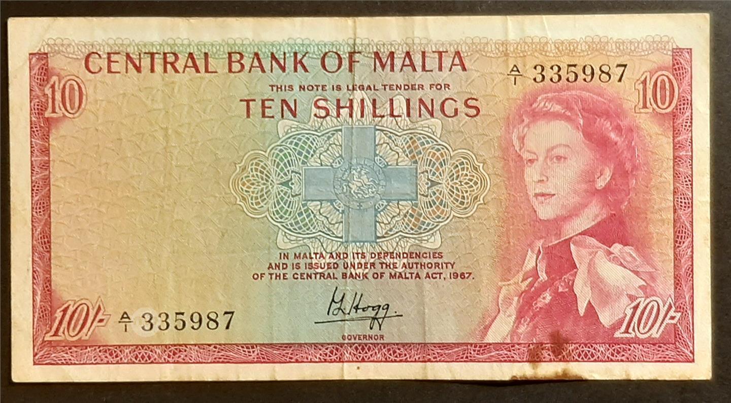 CENTRAL BANK OF MALTA - ELIZABETH II TEN SHILLINGS BANKNOTE signed HOGG