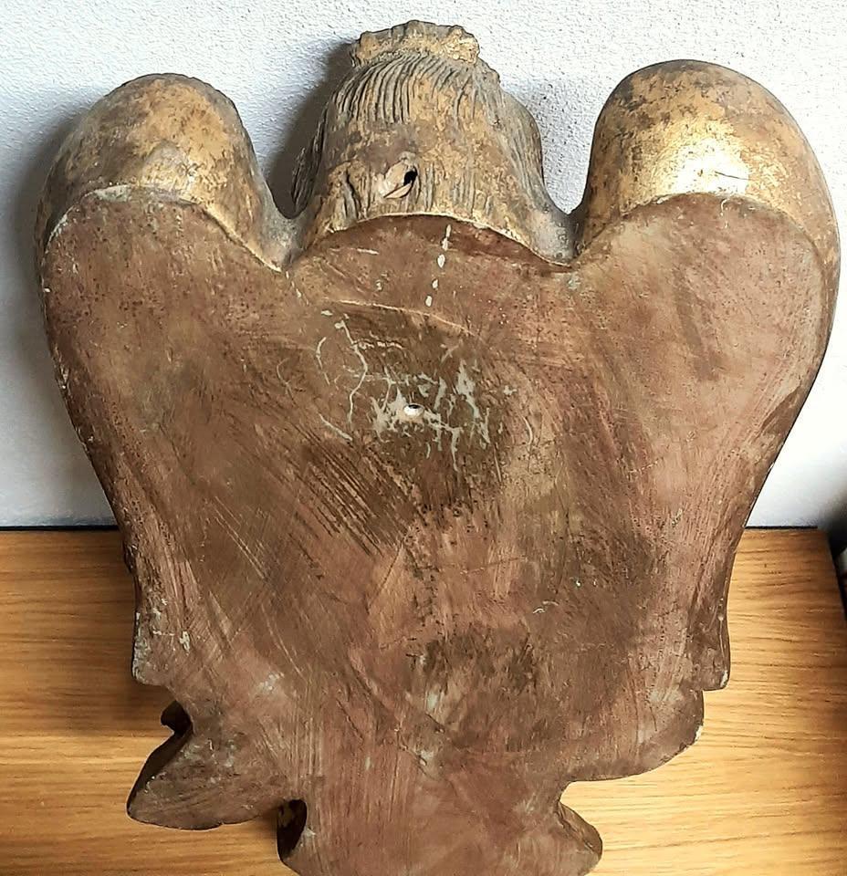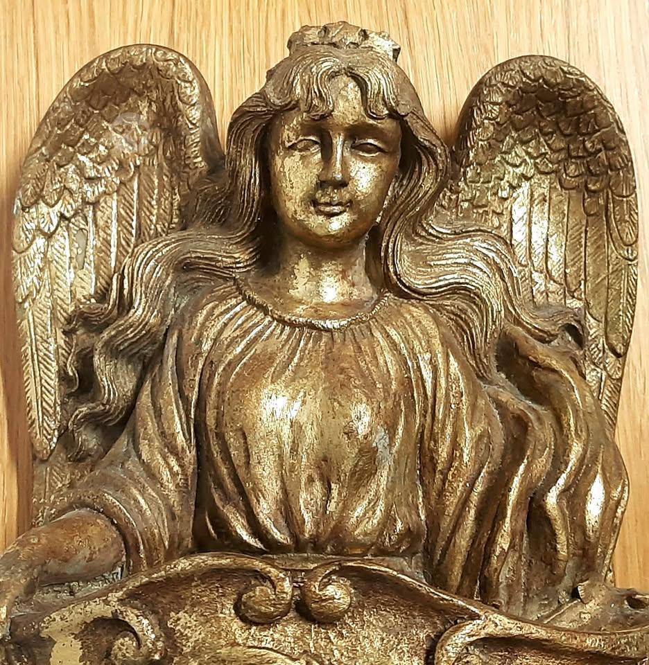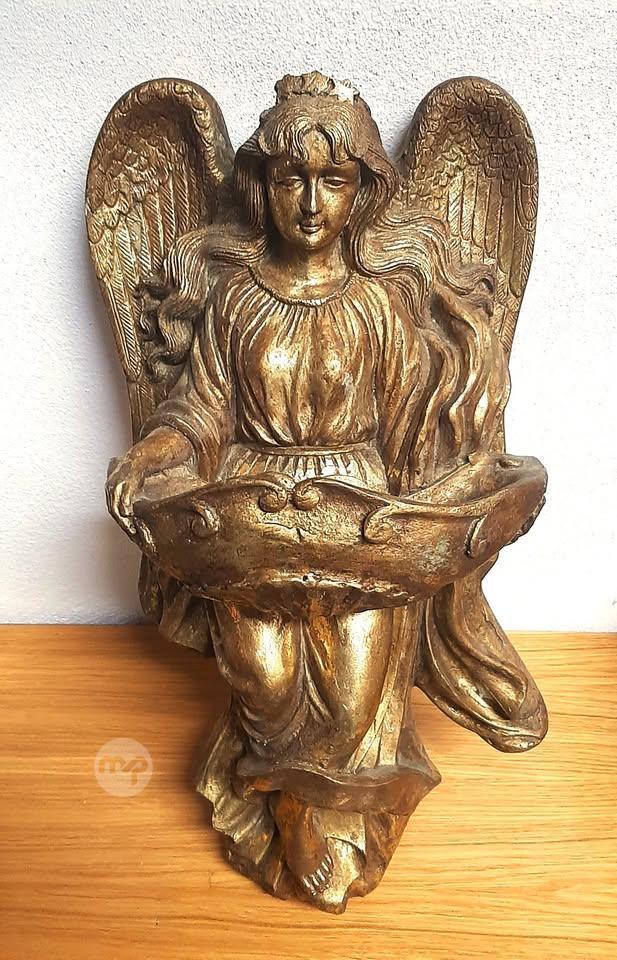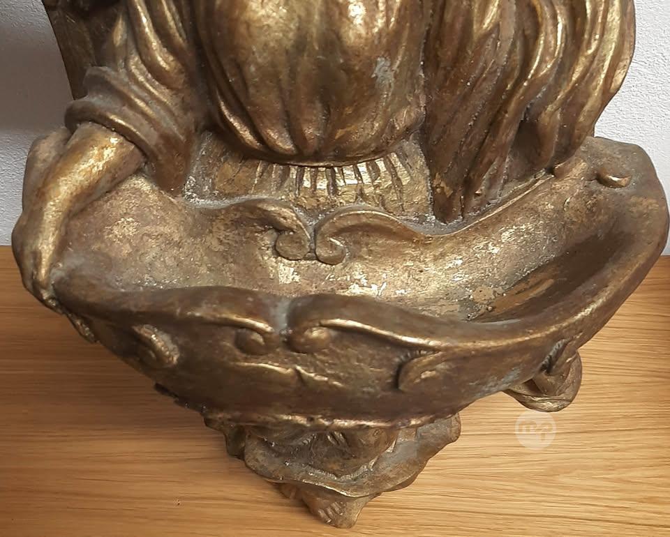 VINTAGE RELIGIOUS GILTED WALL MOUNTED ANGEL HOLDING HOLY WATER FONT