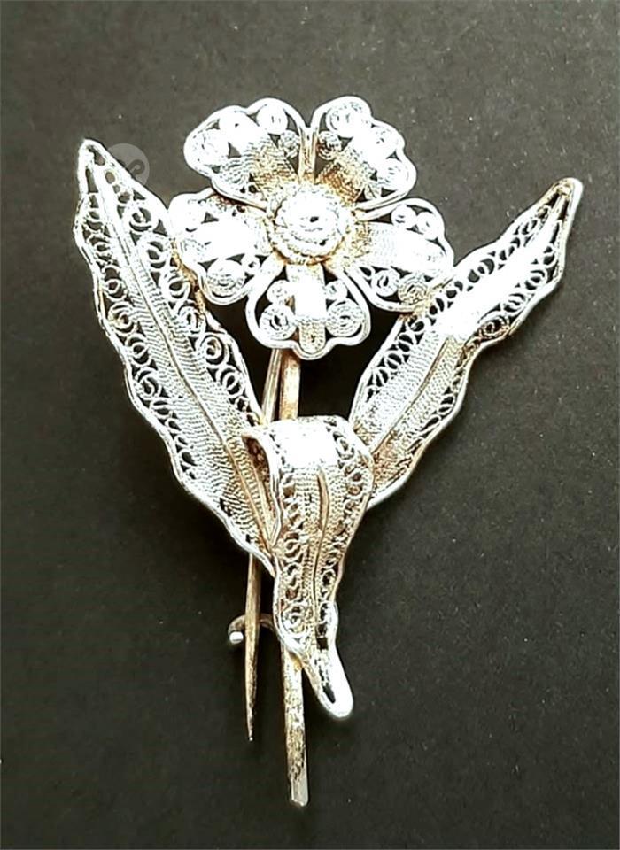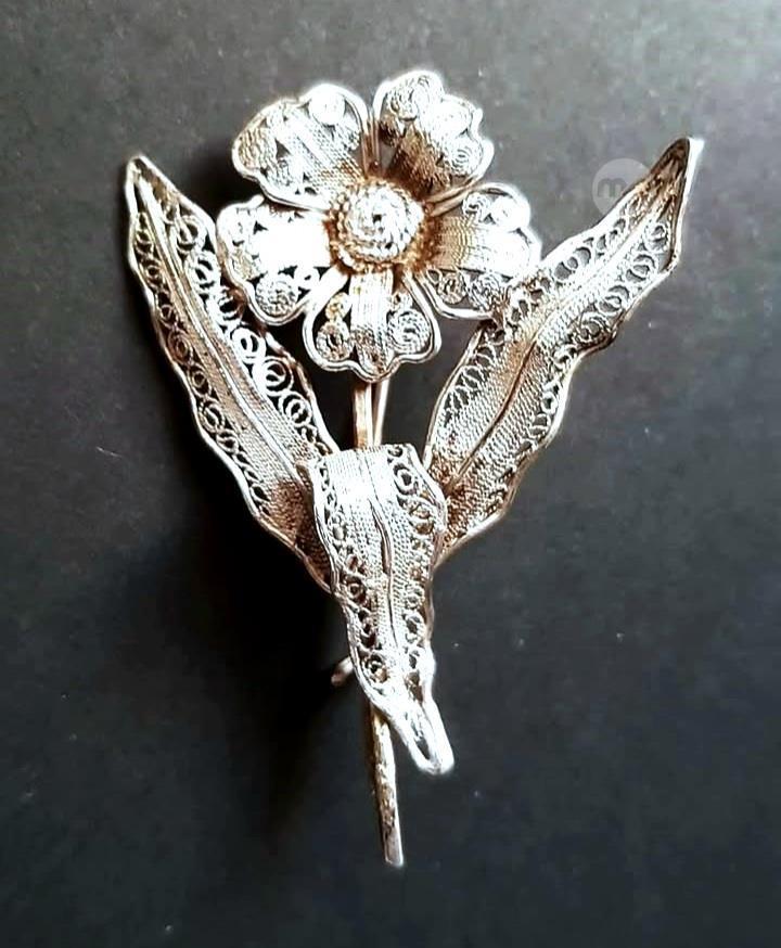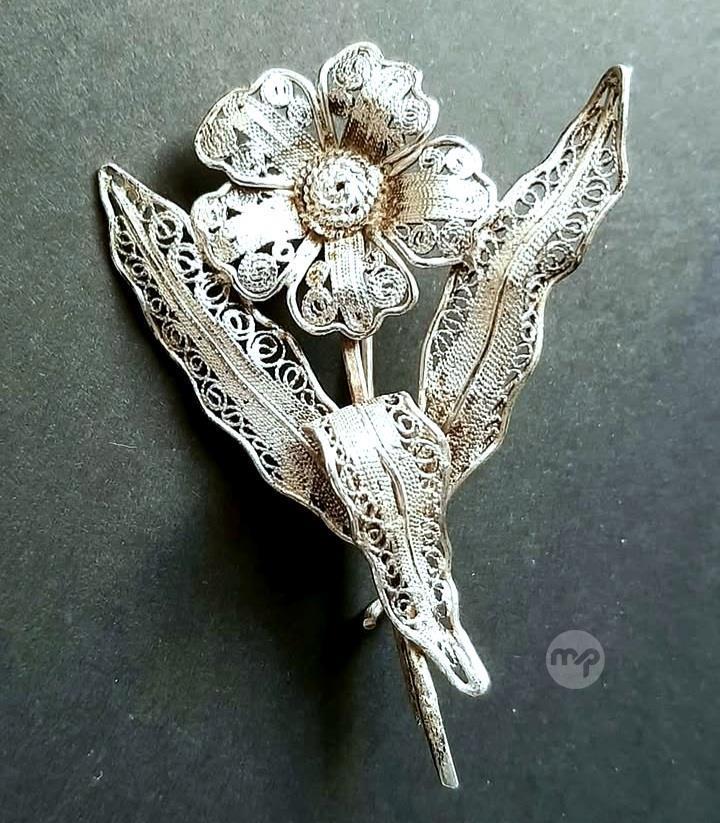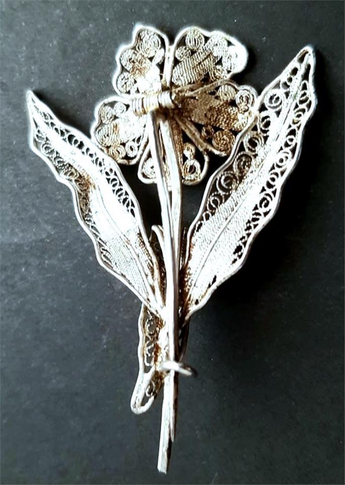 VINTAGE SILVER FILIGREE FLOWER BROOCH