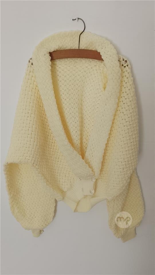 Stay warm and stylish with this beautiful vintage cocoon-style knit shrug. Featuring a thick textured pattern, ribbed cuffs, and a soft cream color that pairs perfectly with jeans, dresses, or lounge wear. Cozy, elegant, and timeless — perfect for fall or winter layering.