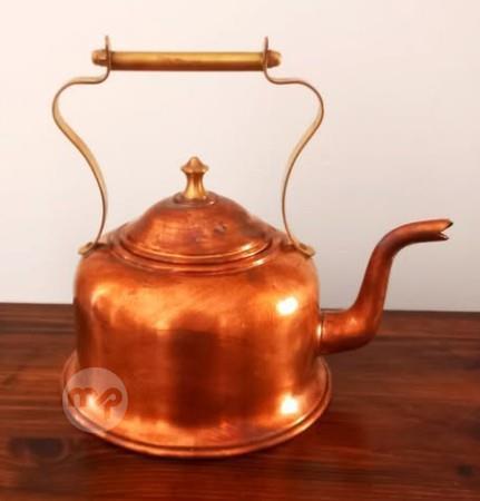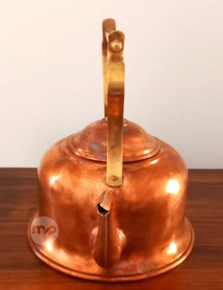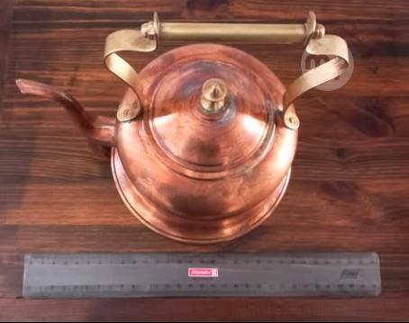 VINTAGE RED COPPER KETTLE with BRASS HANDLE