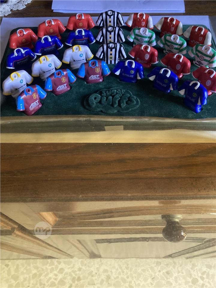 Vintage football kit pencil toppers. There is 27 altogether with names on the back. In the UK they sell at £4.50 each. Very collectable!