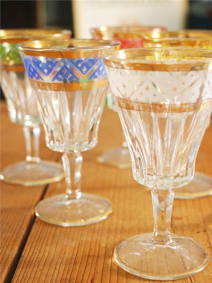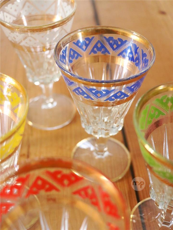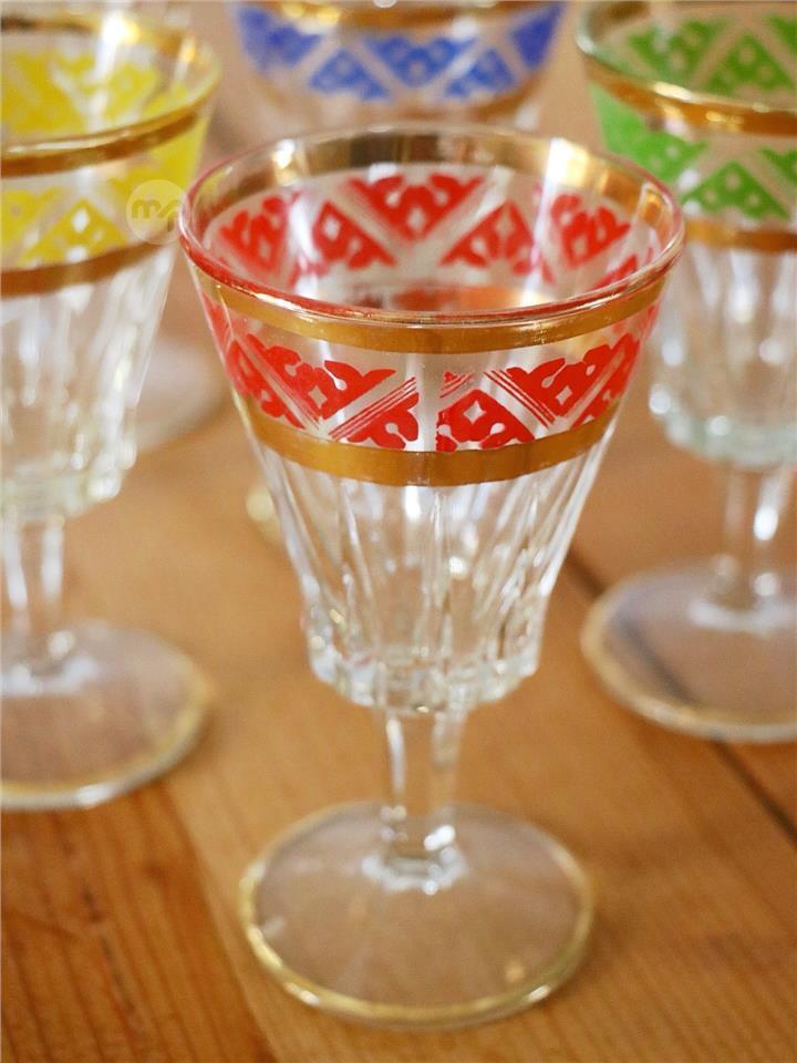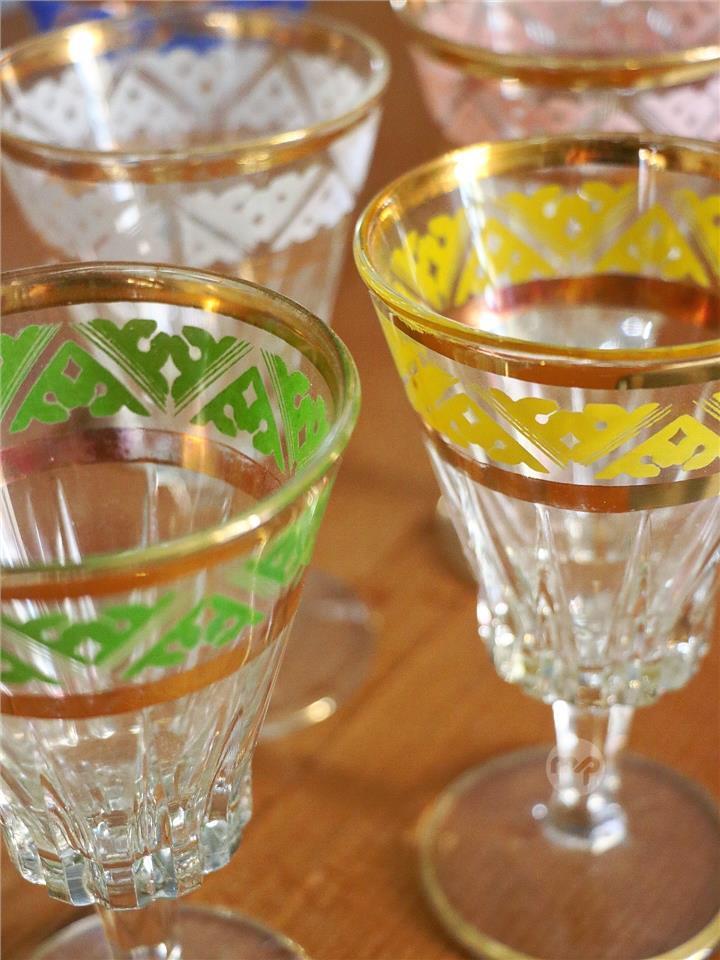 Set of 6 Antique Colourful Glasses