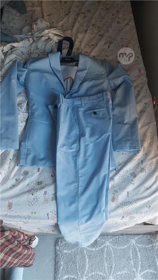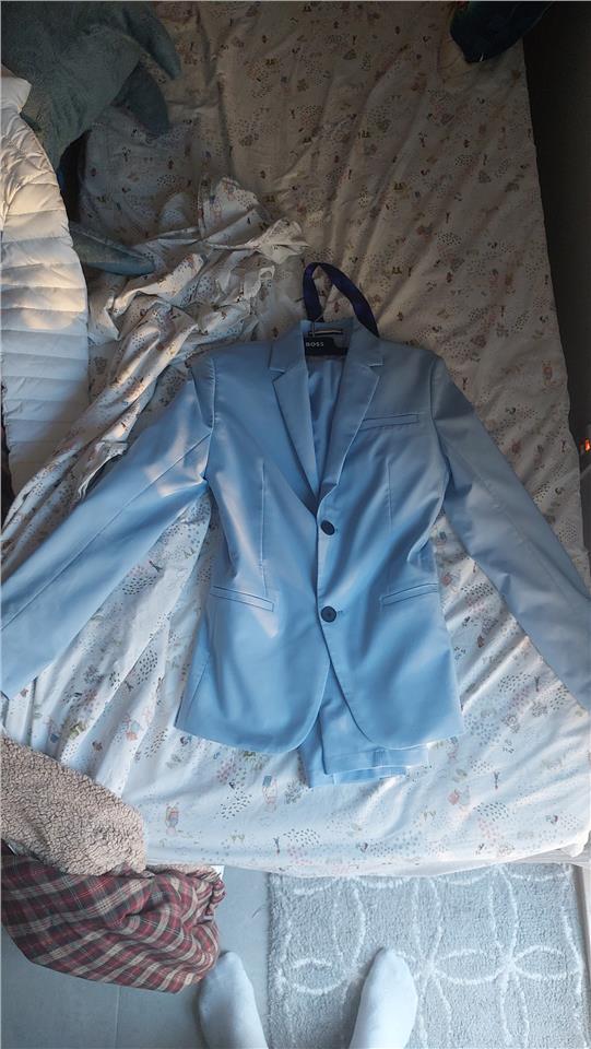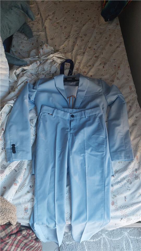 Kids Boss light blue suit. Age 14, the jacket, trousers - Age 12.
