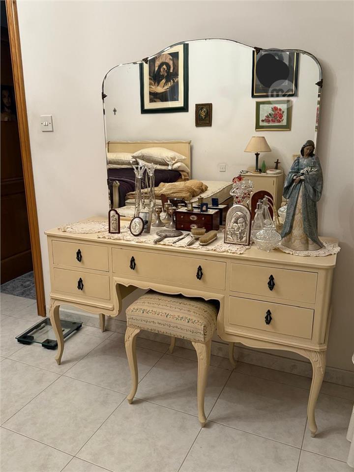 Main bedroom, including double bed, wardrobe, dressing table and stool, chest of drawers, two bed-side tables and chair, in very good condition. Authentic workmanship.