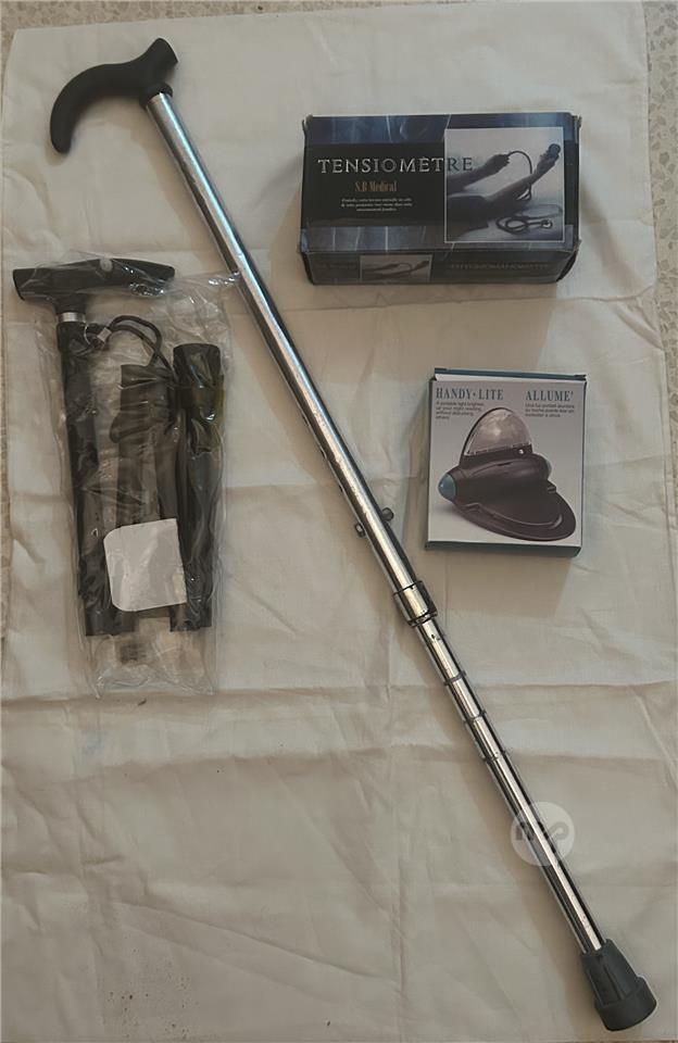 Standard Walking cane with different settings, collapsible walking cane still in packaging and hearing assist machine brand new still boxed 20 ideal as a gift