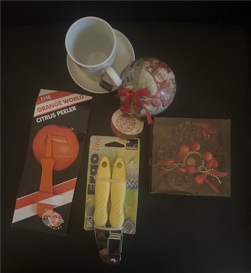 several items for Christmas and kitchen brand new coffee cup with were peeler garlic press Christmas tree ornament table setting for just 15 the lot