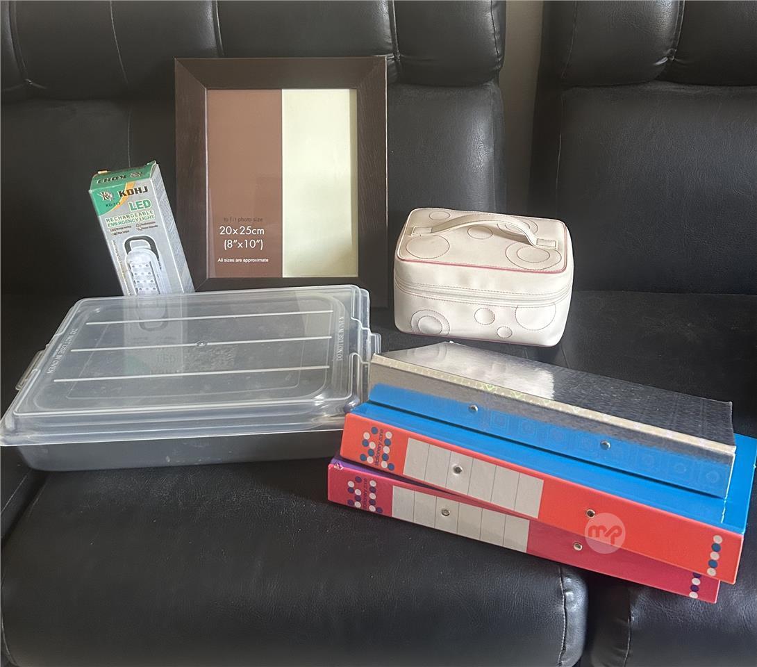 Various files, paper filer not in photo plus photoframe brand new baking cake tin and baking tray and with lid etc 10 the lot