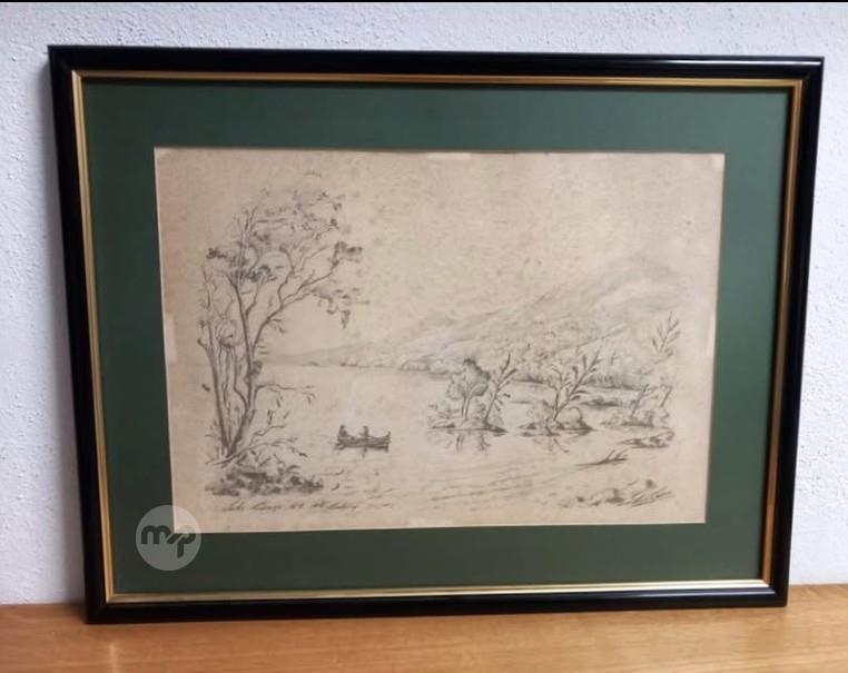 VINTAGE MONOCHROME PRINT by EDWIN GALEA - LAKE GEORGE N.Y. 19TH CENTURY