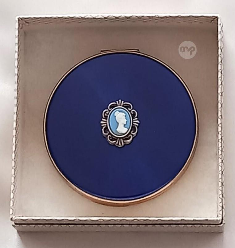 VINTAGE BLUE ENAMEL with CAMEO POWDER COMPACT (1950s/1960s)