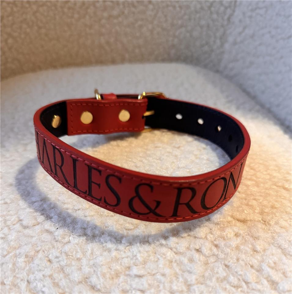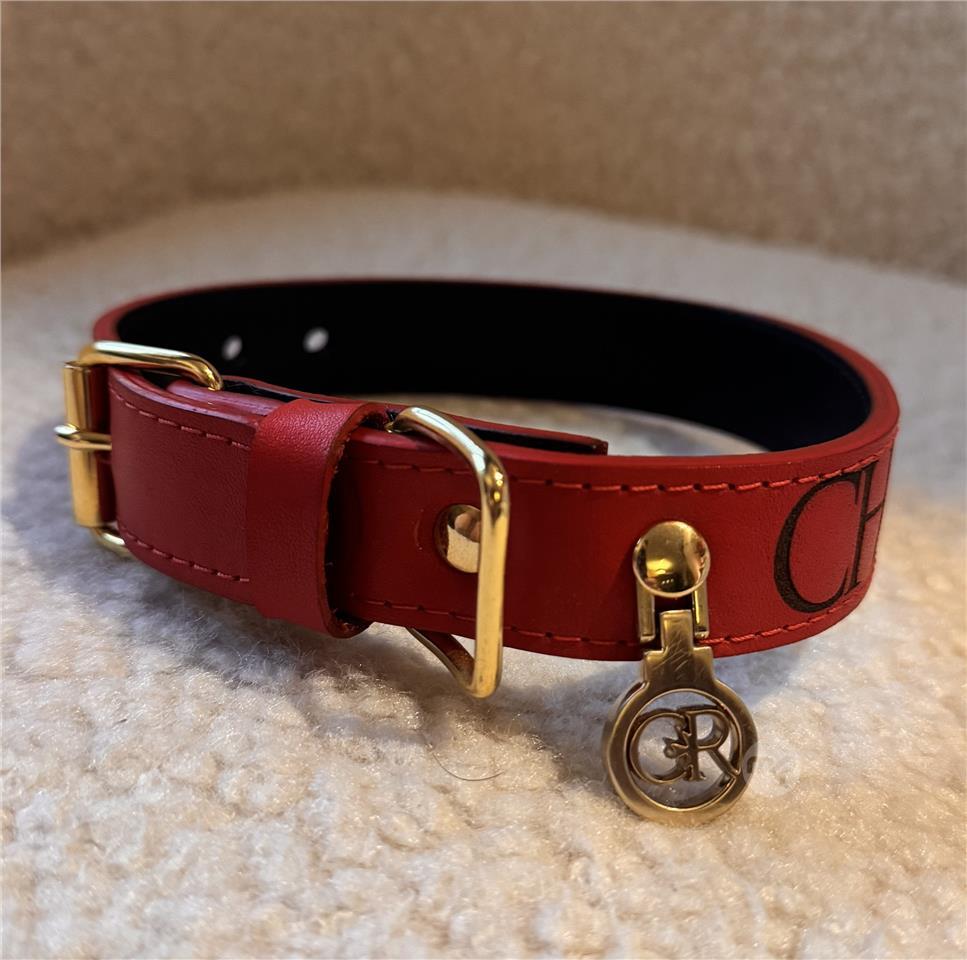 Prototype Charles & Ron red leather dog collar 40 cm (for medium sized dogs). Real Leather.