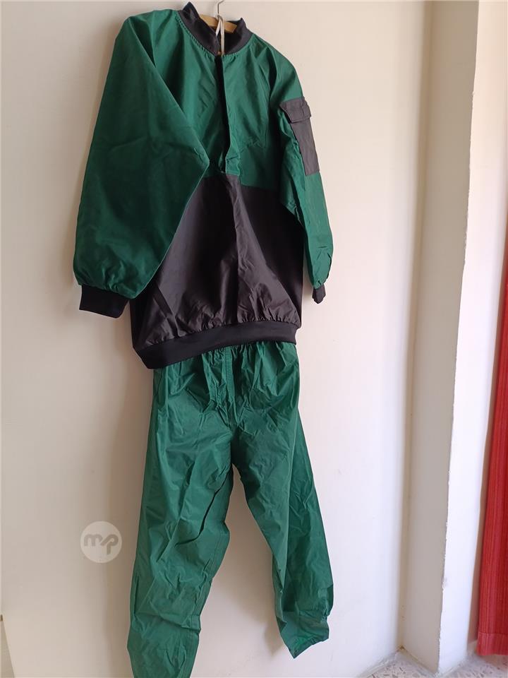 Black and green waterproof top & trousers. Was used for kayaking in winter. Can be used for other watersports or even on a rainy day.