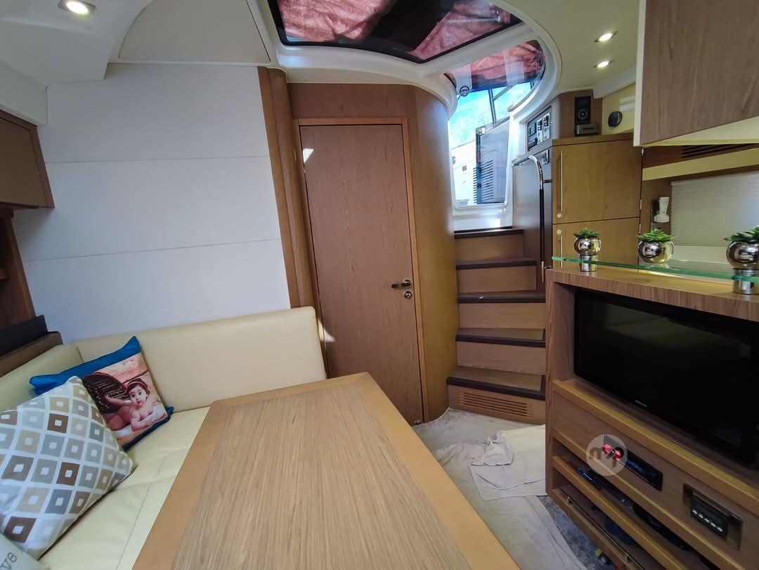This gt44 is the top of the range model that you can get which have walnut interior, 3 ac's, built in pasarella, interior bose speakers with subwoofers, 3 tv's,all kitchen and toilet water mixers are like new, leather sofa like new no swirls, 2 large beds and a sofa that sleeps 8 inside. Kitchen with led underneath and bed with led underneath, built in with battery and water computer. 2 bathrooms 2 showers new carpet from big ben to keep the walnut floor like new. Hob never used, microwave/grill black and gray holding tanks, platform camera, 6 hertz speakers,2subwoofers hertz and 3 amplifiers, electric hardtop sunroof, very nice dashboard with all analog and digital display, simrad autopilot, simrad gps, x2 fushion sound controllers, bbq grill and sink, c shape seats with like new cushions, usb mobile charger, volvo zip wakes, volvo joystick, automatic garage for tender with winch inside, all teak is nice and taken care of it. Electric anchor, front deck cushions with up position and much much more which I cant remember but you can ask me and I will answer.
