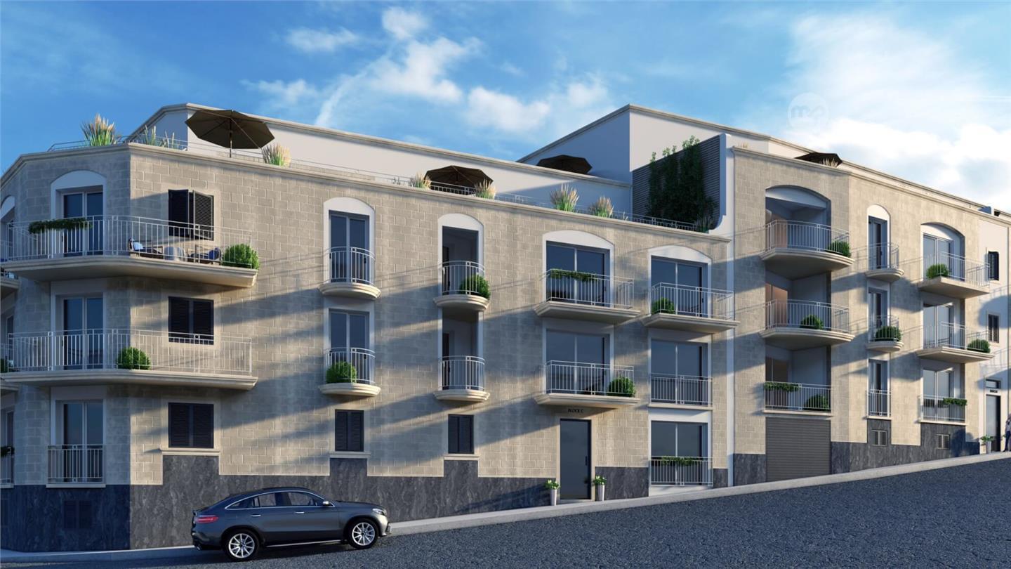 Bright shell-form apartment enjoying beautiful country views of Ta' Żejta Valley. Served with a lift, and includes access to a communal garden and finished common areas.