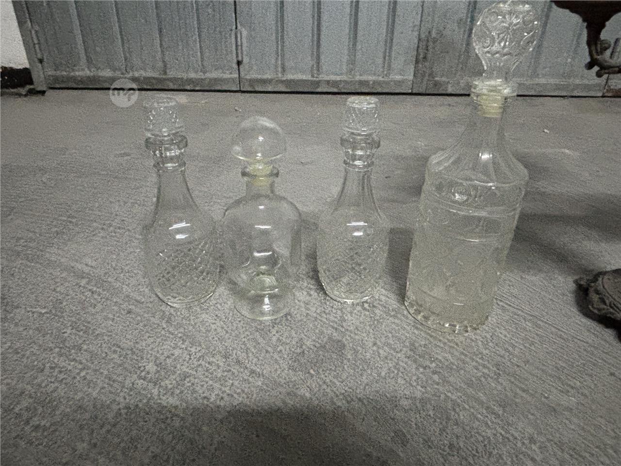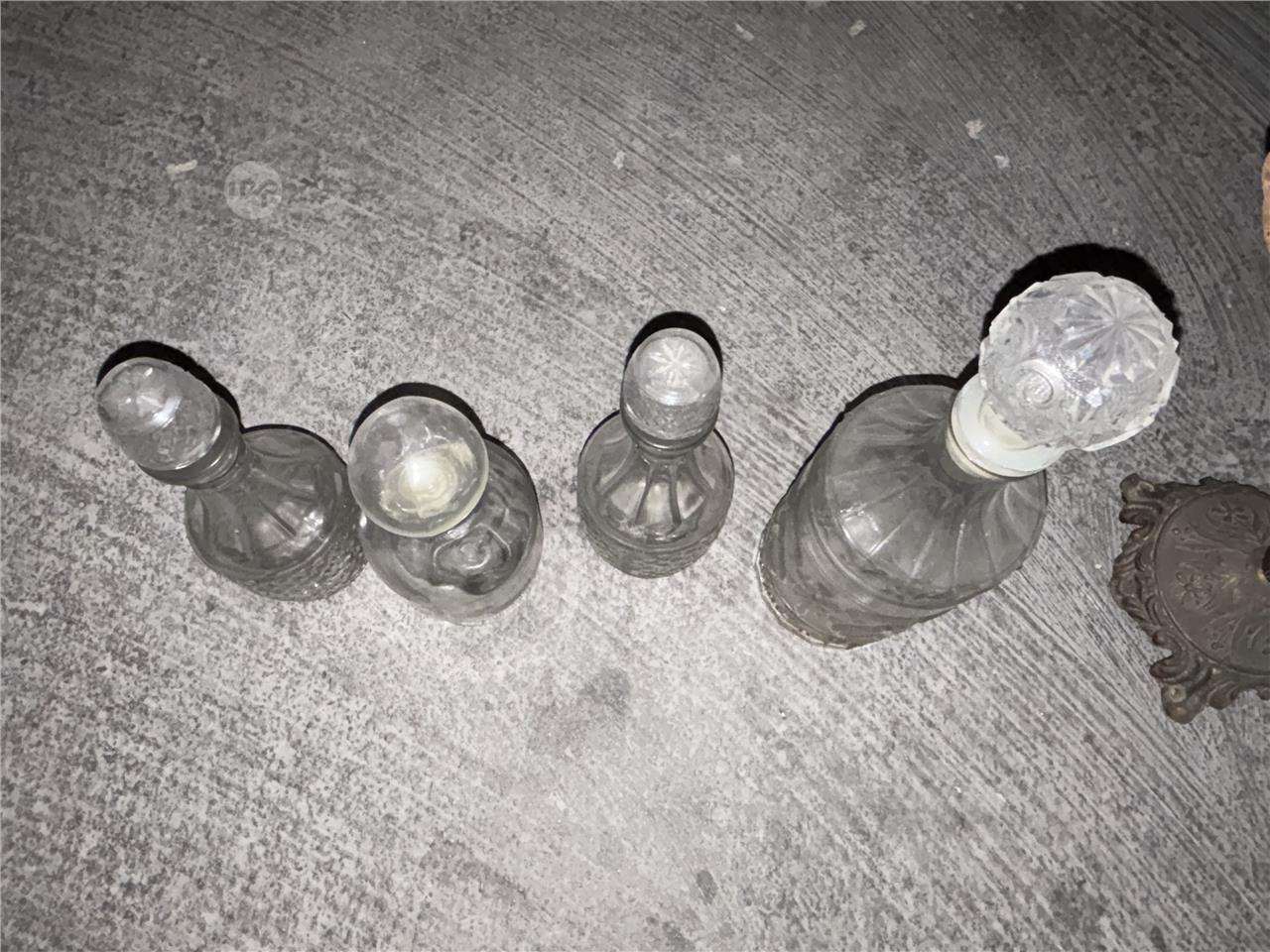 Charming mixed set of four vintage glass decanters, each with its own character and glass stopper.