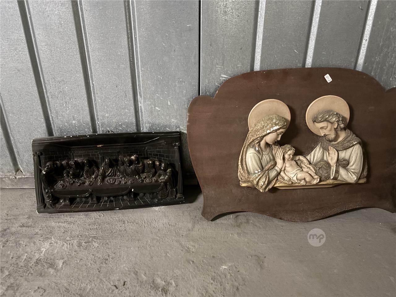 Carved last supper and joseph mary and jesus on a wooden plank - €10 for both