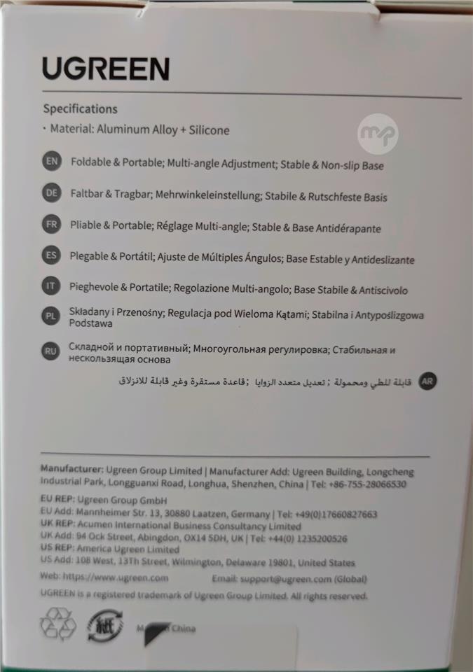UGREEN Foldable Multi-Angle Portable Aluminium Stand for Phone