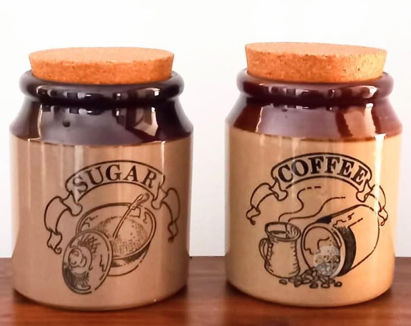 EARTHENWARE SUGAR & COFFEE LIDDED POTS / JARS @ €15