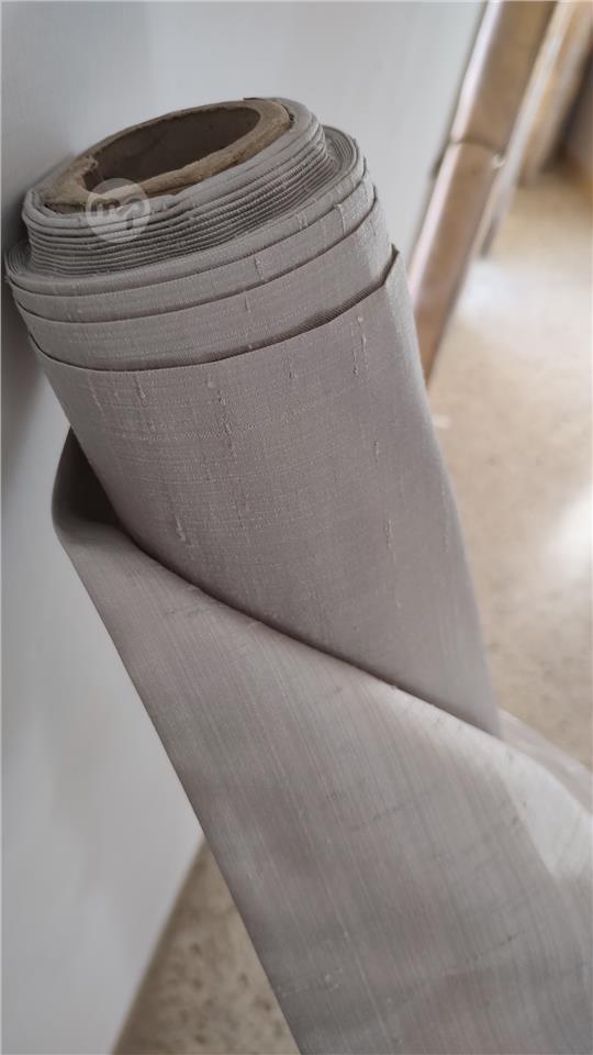 New unused roll of material 4m wide about 12 m left brand new silver tone colour, robust cloth. House sale quality sewing machine also available